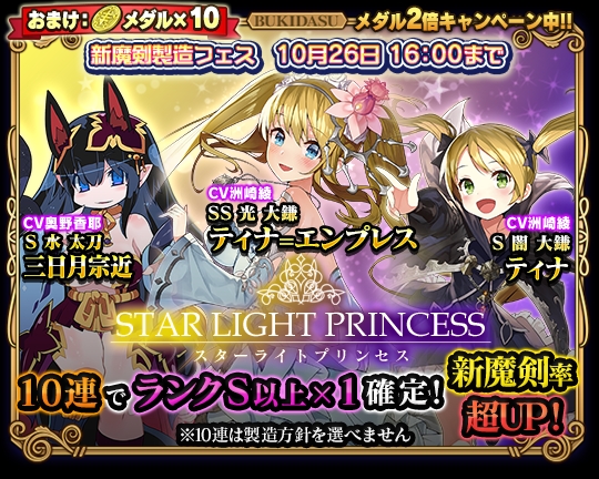 ブレイブソード ブレイズソウル 裏 魔王祭 スターライトプリンセス 2つのフェスを同時開催 人気声優の洲崎綾さん演じる ティナ 姉妹が新魔剣として登場 Boom App Games